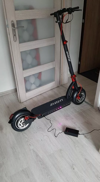 Je vis en France, la trottinette m'a été livrée en seulement quatre jours. La livraison a donc été très rapide. Elle était bien emballée et comprenait quelques outils pour le montage ainsi que le chargeur. Le montage a été très facile, car il suffisait de visser deux vis sur le guidon, puis d'attacher les poignées pour que le scooter soit prêt à rouler. Il était déjà chargé, j'ai donc pu l'essayer immédiatement. Les commandes sont très simples et expliquées dans le manuel fourni. En descente et, grâce à ses deux freins à disque et son frein électrique, il peut être arrêté rapidement et en toute sécurité. Elle est bien éclairée et les bandes LED sur les côtés sont une touche agréable. Ils ont fait un travail soigné. Elle dispose de trois vitesses, comme annoncé, et peut facilement atteindre 40 km/h. Je suis très satisfait de la qualité de fabrication.